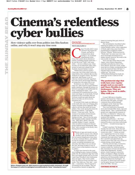 Cinema’s relentless cyber bullies 18 Monday Sep 2017 Posted by admin in Articles ≈ Comments Off on Cinema’s relentless cyber bullies Mumbai Mirror, 17.9.17 https://mumbaimirror.indiatimes.com/others/sunday-read/cinemas-relentless-cyber-bullies/articleshow/60716511.cms To share this: Click to share on Facebook (Opens in new window) Facebook Click to share on X (Opens in new window) X Click to share on Pinterest (Opens in new window) Pinterest Click to email a link to a friend (Opens in new window) Email Click to share on Reddit (Opens in new window) Reddit Click to share on Pocket (Opens in new window) Pocket Click to share on LinkedIn (Opens in new window) LinkedIn Click to share on Tumblr (Opens in new window) Tumblr Like Loading...